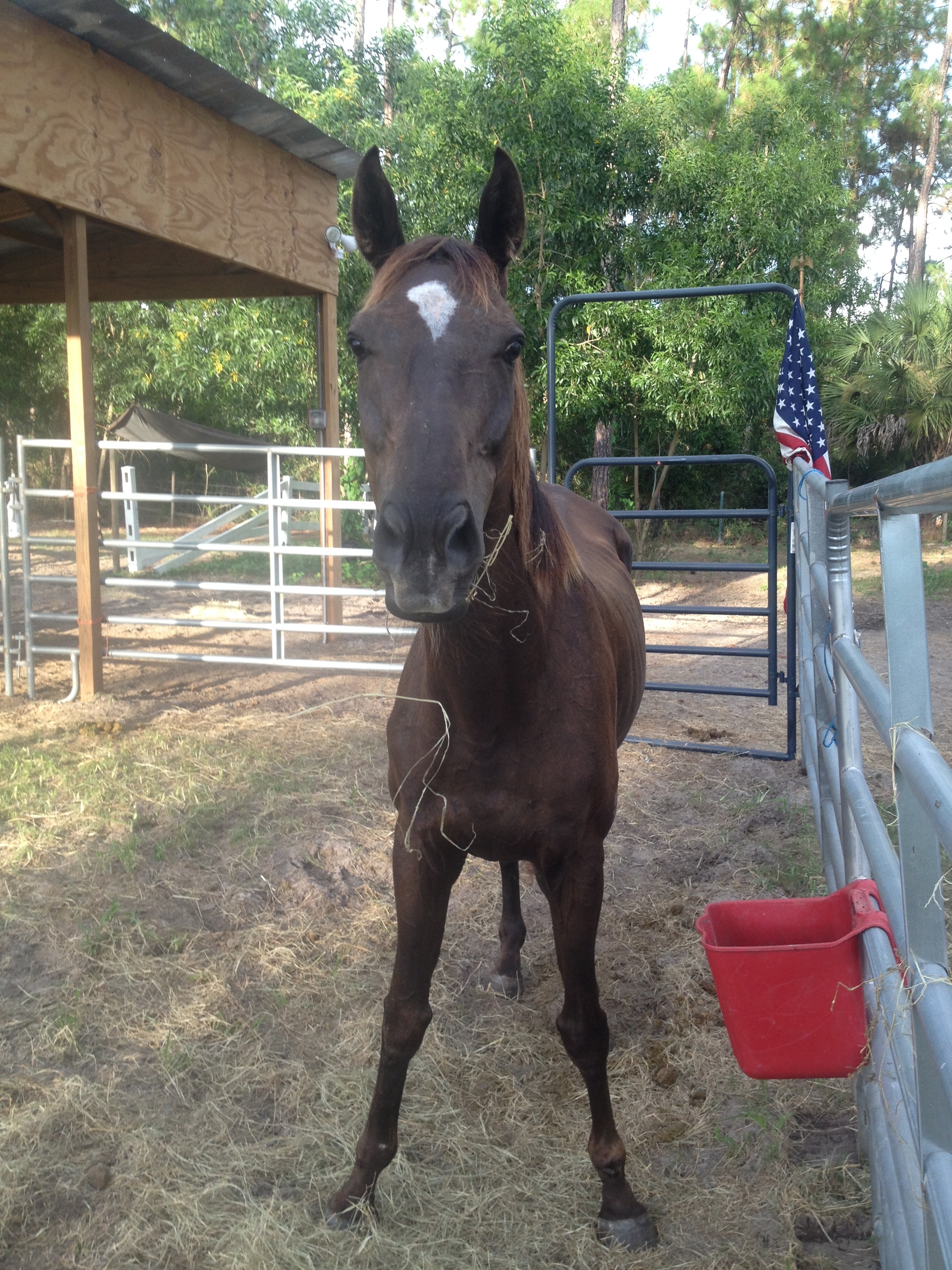 A Thoroughbred Mare? What could I possibly have to say? Well hang around and find out. This blog is about me, the people I have met and the lessons I have learned. If you want to read the start of my story, Click here! We are still working on the format of this whole blog thing!! And by the way, yes, that is hay sticking out of my mouth. I am a good eater, so get used to it!